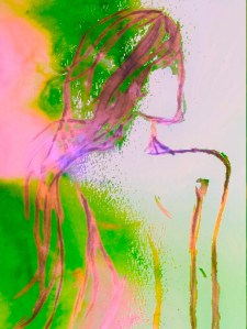 Watercolored Sketch of Woman hair and back
